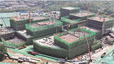 ■市北区现有省级重点项目12个、市级重点项目26个、区级重点项目82个。今年以来,市北区加快推进项目建设,为高质量发展注入新动力。图为人工智能产业集聚区文化体育中心项目及周边。 修相科 摄