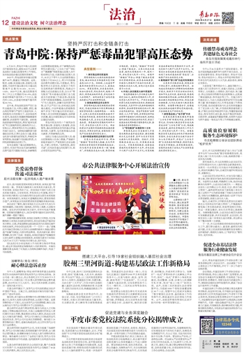 近年来,青岛法院坚持严厉打击和全链条打击,对职业毒贩、累犯、毒品再犯等罪行严重和主观恶性深、人身危险性大的犯罪分子,坚决依法判处重刑,依法惩处窝藏转移隐瞒毒资毒赃罪、洗钱罪等下游犯罪。高标准推进禁毒审判规范化,聚焦“庭审实质化”和证据裁判原则,确保程序公正、实体公正,聚焦审判队伍专业化建设,形成打击合力。坚持能动履职参与禁毒综合治理,汇聚社会各方力量,营造全民参与禁毒的浓厚氛围,积极延伸审判职能,依法履行司法建议职责,共同促进禁毒综合治理工作。