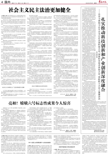 深入贯彻习近平总书记关于全过程人民民主重要论述,不断发展全过程人民民主,展现中国民主新气象;以习近平法治思想为指导,开创全面依法治国新局面……社会主义民主法治建设不断取得新进展、新成效,为强国建设、民族复兴伟业提供坚强的政治保障。
