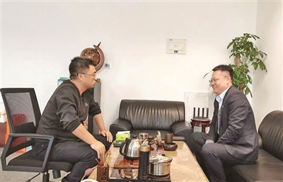 ■青岛自贸区支行客户经理(右)走访企业了解客户业务需求。