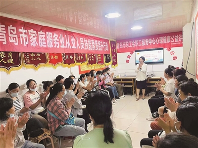 ■市总工会职工服务中心的心理咨询师为家政从业人员授课。