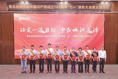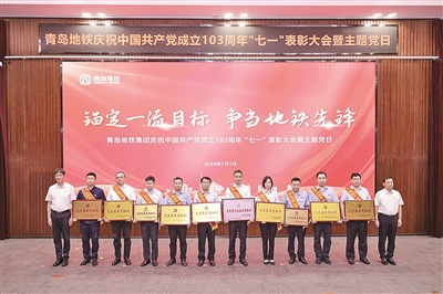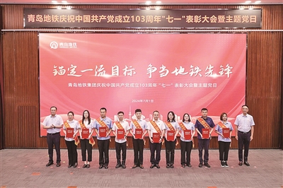 7月1日下午,青岛地铁集团举行庆祝中国共产党成立103周年“七一”表彰大会暨“锚定一流目标 争当地铁先锋”主题党日活动。