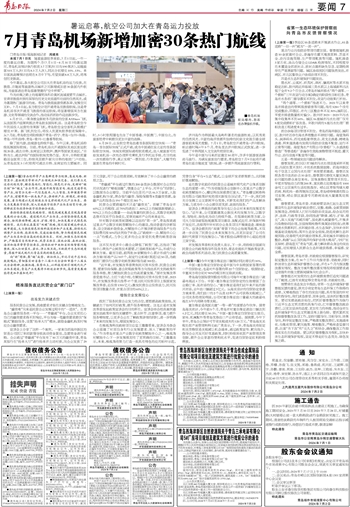 今年暑运,各大航空公司加大在青岛机场的运力投放,在敦煌、吉隆坡等旅游热点城市之间新增或加密30条国内外航线,为旅客进出青岛搭建便捷的“空中桥梁”。
