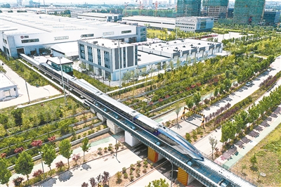 ■轨道交通装备产业集群是青岛正在全力打造的世界级产业集群之一。图为中车四方生产制造的磁悬浮列车。