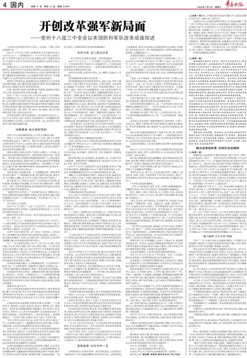 国防和军队改革作为单独一部分写进全会决定,这在全会历史上是第一次。