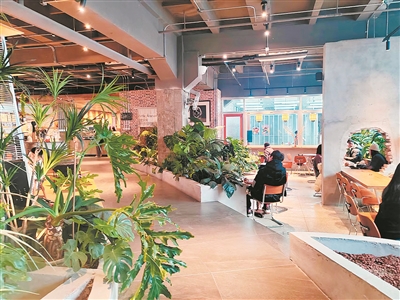 延安三路109号:原海珊制衣厂沉寂多年的厂房、食堂、仓库被改造成办公室、咖啡厅和便利店,摇身一变成为健康产业园