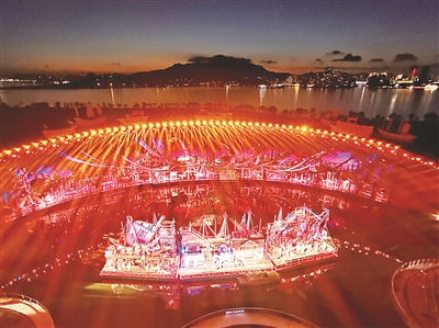 本报7月12日讯 12日晚,西海岸凤凰岛艺术中心360度全景秀《海上有青岛》正式公演。该项目由青岛西海岸旅游投资集团投资打造,引进业内知名团队北京锋尚文化参与项目制作,中建二局华东公司承建,为山东省重点文旅项目。作为青岛首台大型户外演艺秀,《海上有青岛》的亮相助“燃”了暑期文旅市场,成为青岛文旅高质量发展迈出的重要一步。