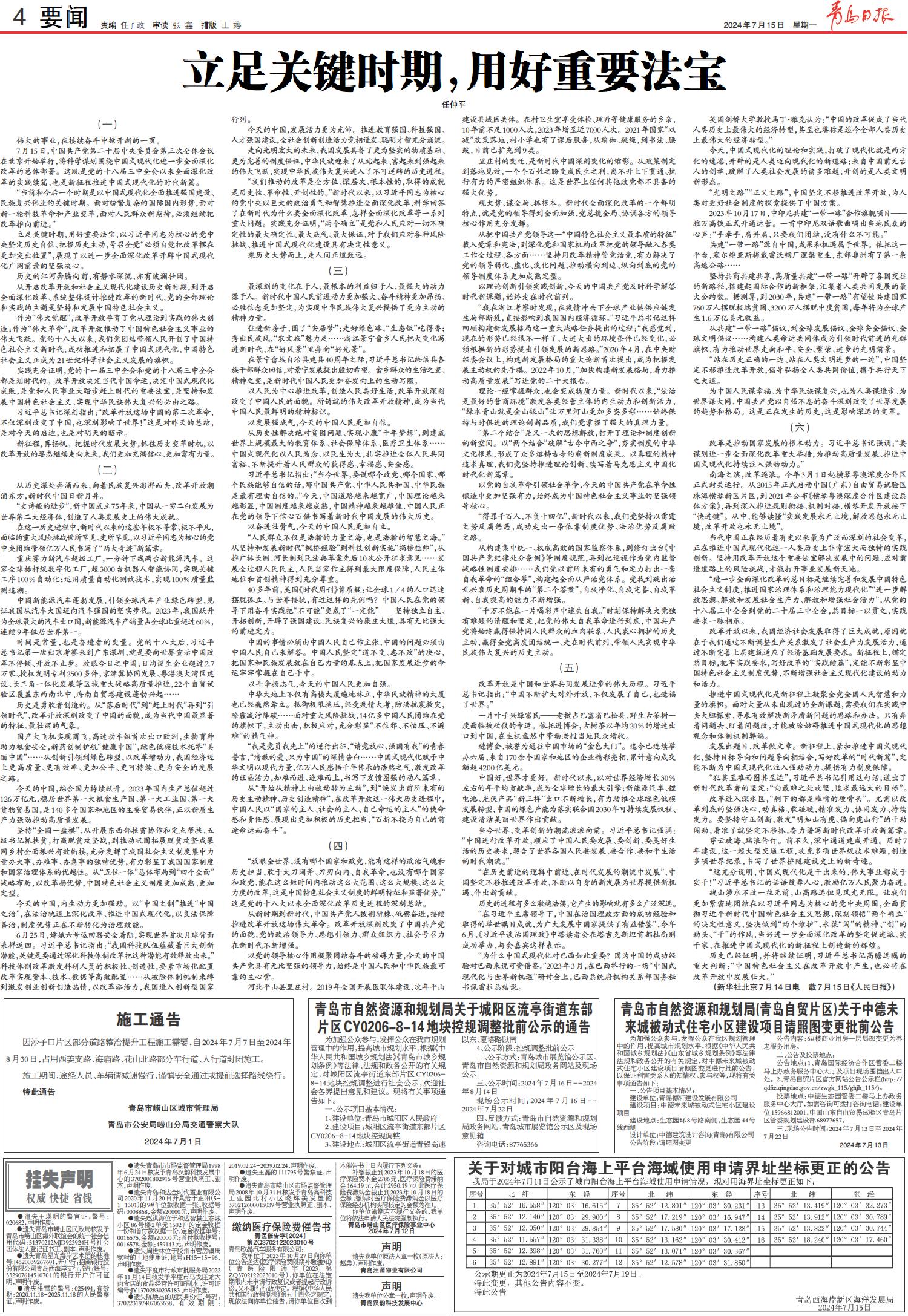 01 首版 02 要闻 03 要闻 04 要闻 05 青报聚焦 06 理论周刊 07 未来教育 08 艺术青岛 09 城市艺术 10 琴岛 11 财智 12 青报公益