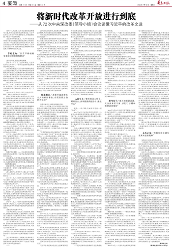 10年多来,72次会议部署一系列重大改革事项,构建起制度建设的“四梁八柱”,推动内政外交国防、治党治国治军各项改革不断打开新局面、迈上新台阶。