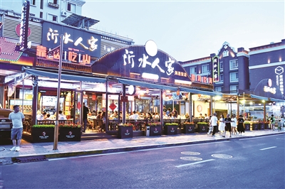 ■华灯初上,登州路啤酒街坐满市民和游客,在“啤酒+美食”中体会“青岛味道”。