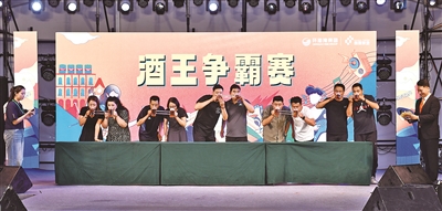 ■在传统项目环节,啤酒爱好者们争夺“酒王”称号。