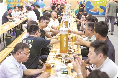 ■啤酒大棚、烟火气美食街、文创市集、夏日游园会等多元业态让啤酒文化与城市人文交织互融。崔冬妮 摄