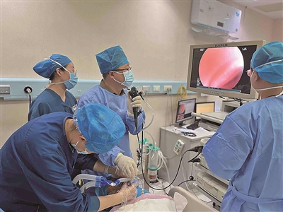 ■武晓(中)带领团队为患者进行呼吸介入检查。