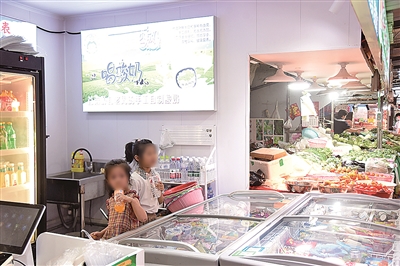 ▲两名儿童被家长带到农贸市场内,她们的父母都在这里经营摊点。