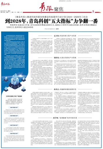 把科技创新摆在发展全局的核心位置,青岛从顶层设计出发提纲挈领,谋划了未来五年科技创新引领发展的具体路径。日前,《青岛市深入推进科技创新加快建设科技强市行动计划(2024—2028年)》(以下简称《行动计划》)出台,明确坚持以科技创新与产业创新深度融合为引领、以科技成果转化为主线、以海洋科技创新为特色、以科技研发投入为保障,统筹教育科技人才一体化发展,高质量建设具有核心竞争力的科技强市,为科技强国、科技强省建设作出贡献。