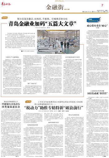 加码“五篇大文章”,进一步增强金融支持力度、可持续性和专业化水平,持续优化金融机构制度、产品和服务体系,助力青岛经济金融高质量发展,正成为青岛金融业的“进阶策”。