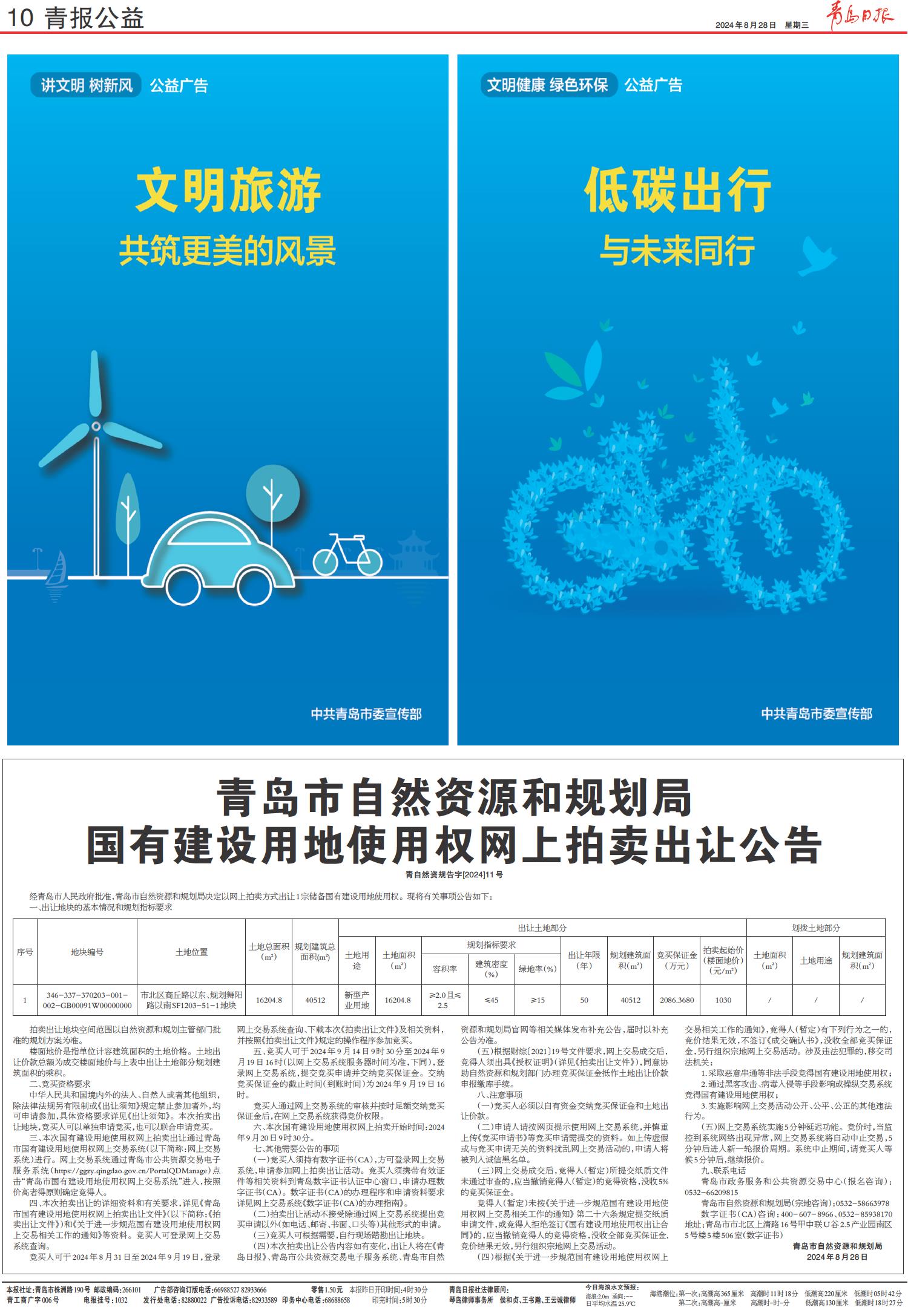 青岛市自然资源和规划局国有建设用地使用权网上拍卖出让公告