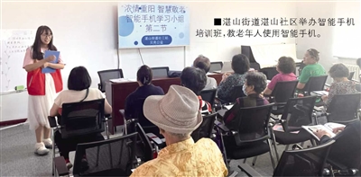 ■湛山街道湛山社区举办智能手机培训班,教老年人使用智能手机。