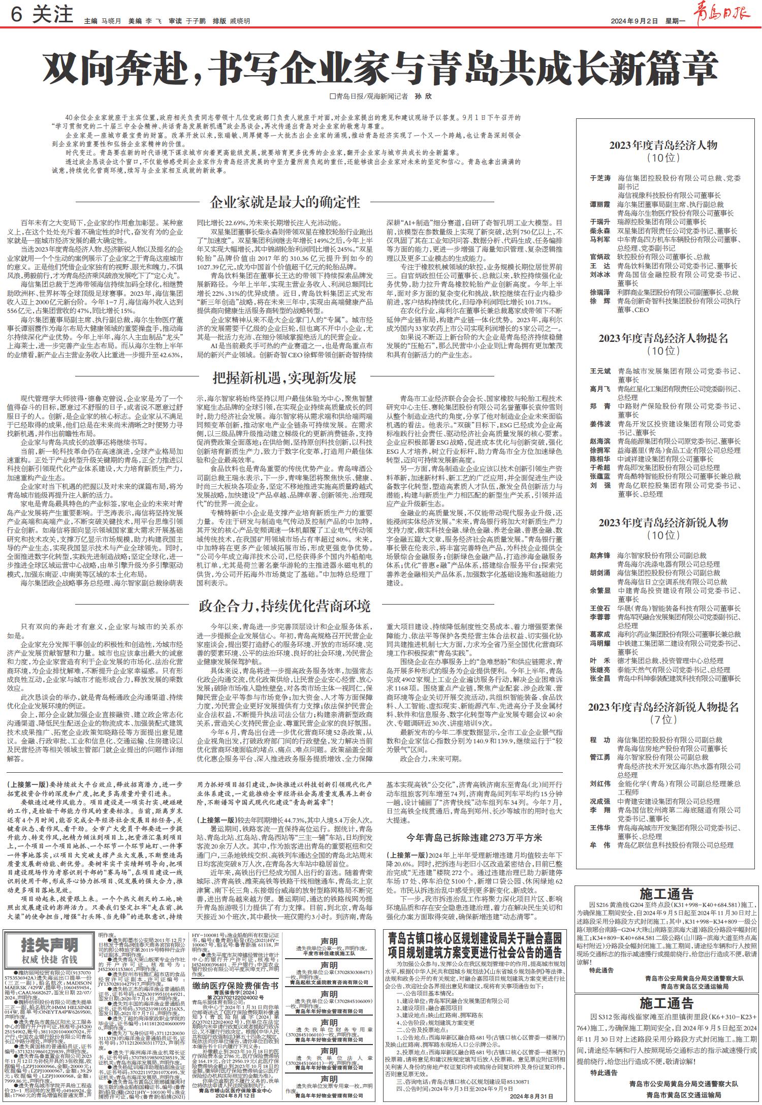 01 首版 02 要闻 03 青报聚焦 04 要闻·专题 05 要闻 06 关注 07 起舞胶州湾 08 艺术青岛