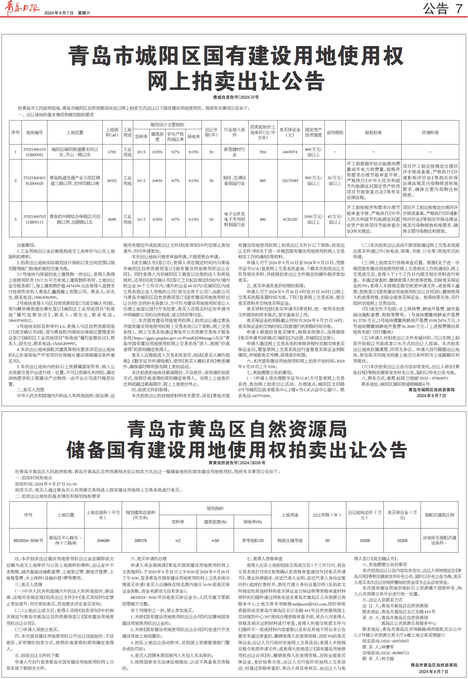 青岛市城阳区国有建设用地使用权网上拍卖出让公告