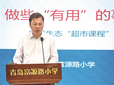 ■青岛富源路小学校长臧文刚介绍“超市课程”开发实施推进情况。