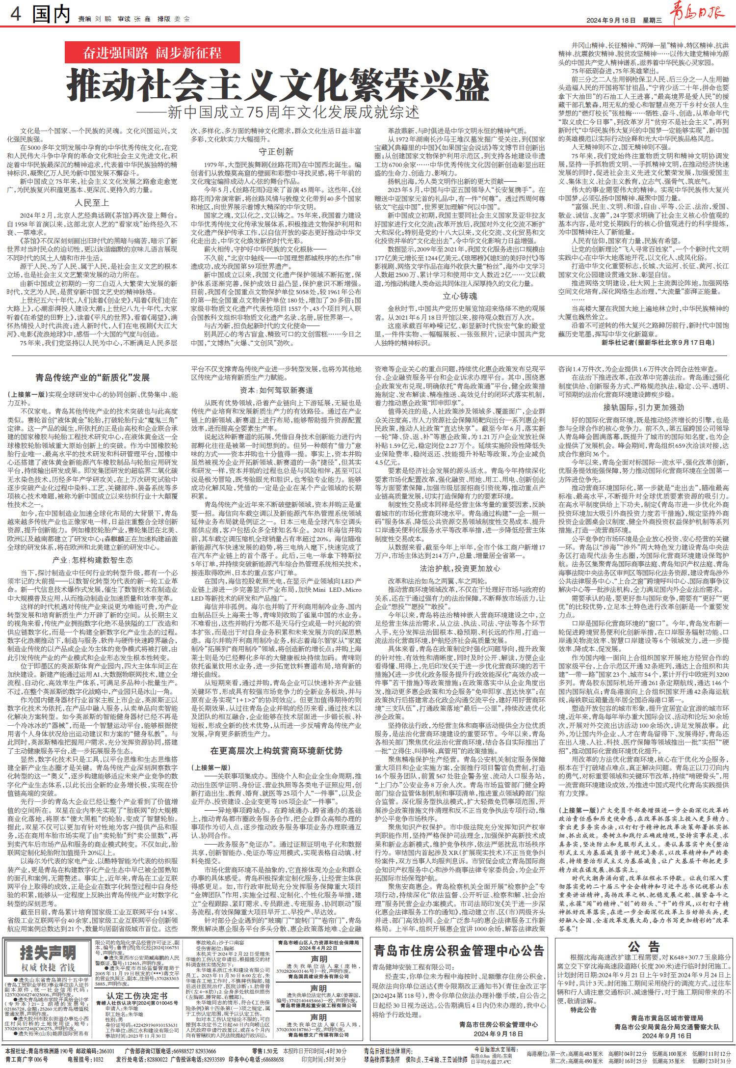01 首版 02 要闻 03 青报聚焦 04 国内 05 起舞胶州湾 06 金融街 07 艺术青岛 08 城市艺术