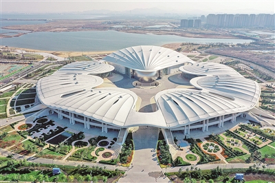 上合之珠国际博览中心被誉为上合示范区“国家会客厅”。