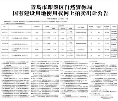 青岛市即墨区自然资源局国有建设用地使用权网上拍卖出让公告