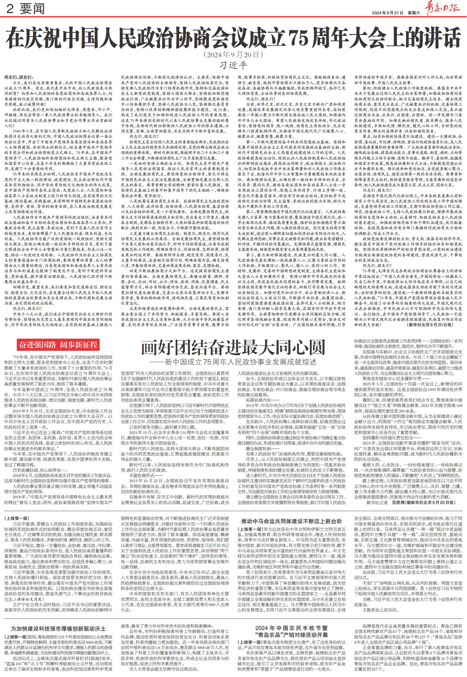在庆祝中国人民政治协商会议成立75周年大会上的讲话