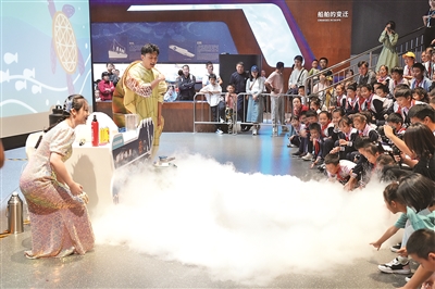◀青岛科技馆“剧”乐部表演带小朋友们开启了一场科学探险之旅。