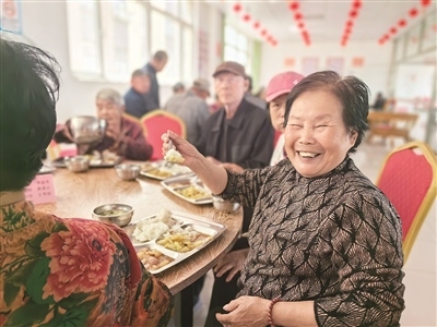 ■爱国庄养老服务站内,老年人们正在愉快用餐。