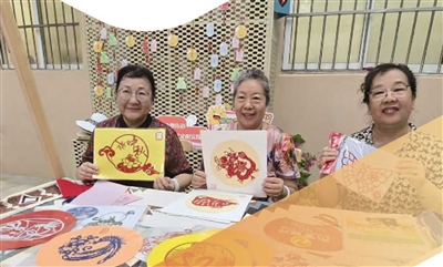 ■市南区民政局举办“中秋养生派对”,非遗剪纸艺术家展示作品。