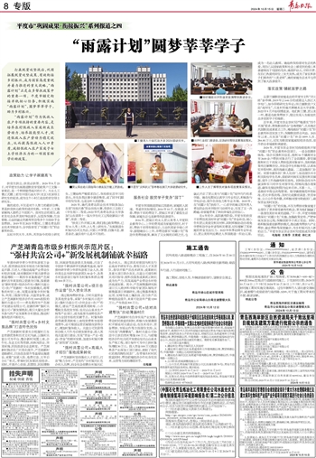 “雨露计划”的实施,不仅为帮扶对象家庭子女提供了更多接受教育的机会,更为他们铺就了一条通往美好未来的道路。“下一步,平度市将继续深化‘雨露计划’实施,加强政策宣传、严把审核发放全过程,保障贫困学子真正受益。同时,将积极探索创新帮扶模式,推动教育帮扶与产业帮扶、就业帮扶等深度融合,为乡村振兴注入新的活力。”平度市农业农业农村局党组成员李黎明说。 毛海刚 王秀萍 王荣成 郑仁光