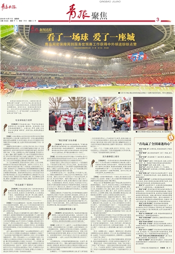 一场场赛事历练出一座城市的办赛水平。赛后,一位外地球迷动情地在社交平台写下这样一段长文:“我很少在赛后描写赛场之外的感受,但青岛的好将让我铭记一辈子。路口,警察肩灯闪烁,安全感十足,引导人员举着印有方向箭头的大牌子,一直到球迷都离开才放下……到底是怎样的城市管理水平、怎样的大型赛事组织能力才能让今夜如此难忘?青岛是一座设身处地为球迷着想的城市,各行各业保障赛事的工作人员辛苦了。感谢青岛,胜利同样属于你们!爱上青岛,我们期待再次相聚!”