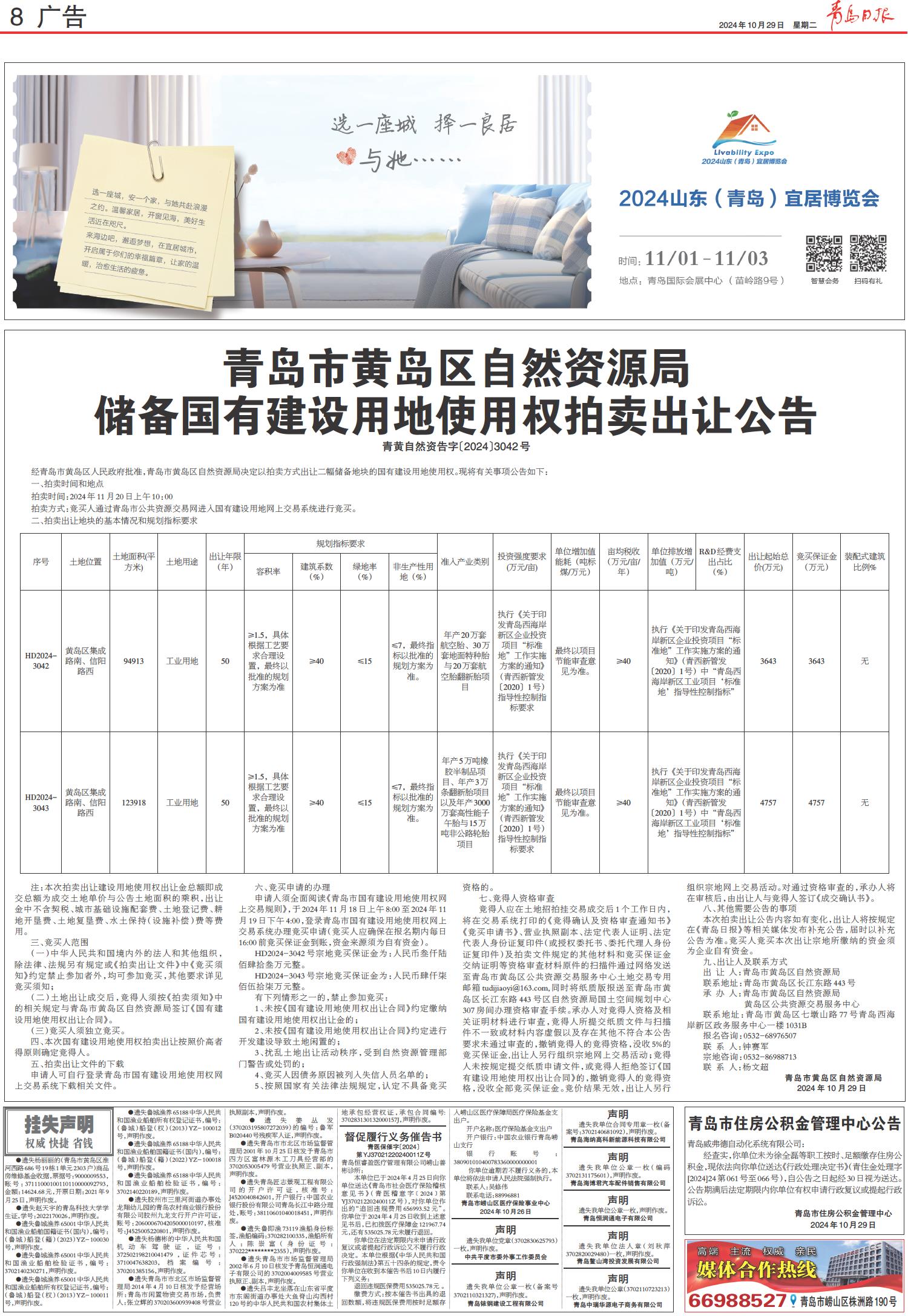 青岛市黄岛区自然资源局储备国有建设用地使用权拍卖出让公告
