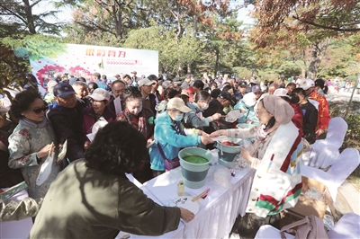 ■10月29日上午,青岛中山公园内秋意浓浓,菊香四溢。近300名军休干部欢聚一堂,参与“荣军敬老 尊崇荣光”主题游园体验活动。
