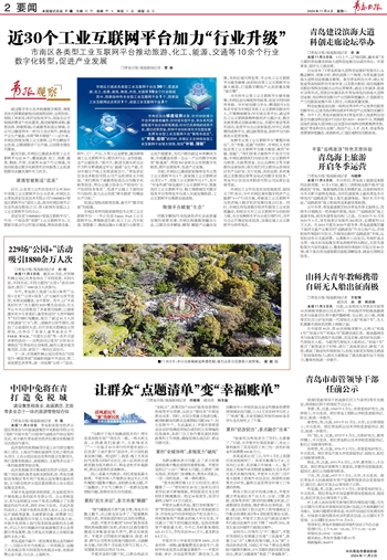 市南区已建成各类型工业互联网平台近30个,覆盖旅游、化工、能源、建筑、物流、外贸、交通等10余个行业领域