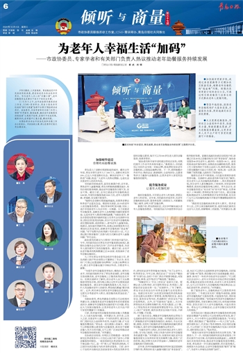 11月26日上午,由市政协委员联络活动工作室、12345·青诉即办、青岛日报社共同打造的“倾听与商量”协商平台第37期协商活动举行。政协委员、专家学者和有关部门负责人围绕“科学谋划、精准施策,推动老年助餐服务持续发展”主题展开协商,在倾听中交流思想,凝聚共识;在商量中汇集力量,解决问题。