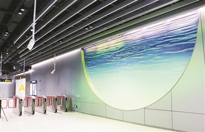 “向海而生,因港而兴。百年青岛港区见证了城市的崛起,承载了民众对青岛的历史记忆、对未来生活的美好向往。独特的历史文化底蕴让2号线西延段的空间艺术设计与其他线路有了明显不同。”青岛地铁第一建设分公司工程处副处长张奉春介绍,设计团队对车站空间装饰、公共艺术、导向标识、服务设施、商业广告、管线综合等专业统筹集成设计,将地域文化、城市特点、市井风情投射在地下空间,努力将2号线西延段打造成滨海国际会客厅。