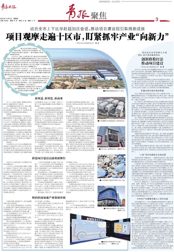 即墨区则向海洋挖潜“高”“新”动能。前三季度,通过精准招商,持续引进海洋重大项目,新引进双丰物探等涉海项目16个。狠抓项目落地,推动海上综合试验场等41个项目入列青岛市海洋重点项目,完成投资66亿元。海洋生物、海洋高端装备等产业园加快建设,中电建海上光伏项目获国家批复、正在加快并网建设。