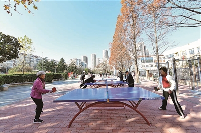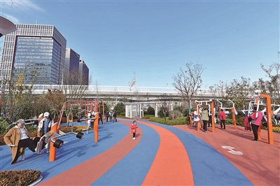 ■市北区布局“东西南北中”全方位、立体化的健身网络。图为新建的劲松五路体育公园。 崔冬妮 摄