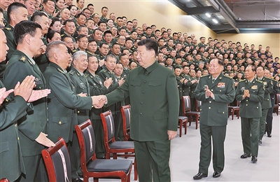 12月4日,中共中央总书记、国家主席、中央军委主席习近平视察信息支援部队,代表党中央和中央军委,对信息支援部队第一次党代表大会的召开表示热烈祝贺,向信息支援部队全体官兵致以诚挚问候。这是习近平同代表们亲切握手。 新华社照片