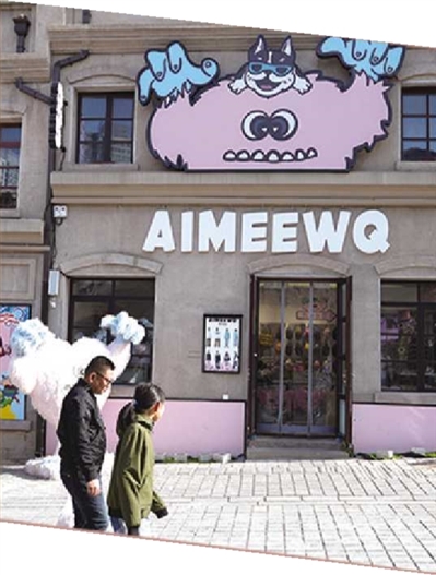 在潍县路上,青岛本土原创IP潮牌AIMEEWQ于今年7月份开业,是一家集文创、服装、潮流周边贩卖于一体的集合店。店内毛绒公仔、服装、包包、帽袜等贩售商品都是原创设计制作,店面美陈和商品包装也都是满满“ins风”,吸引众多年轻消费者进店拍照打卡。“下一步,我们还将在院子里提供咖啡饮品,以多业态集合的形式来满足年轻消费者多元化的消费需求,呈现一种全新的购物体验。”潮牌AIMEEWQ店铺主理人孙澍说。