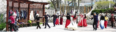 市北区不断增加活动场所,满足老年人娱乐休闲的需要。图为老年人在青岛儿童公园翩翩起舞。