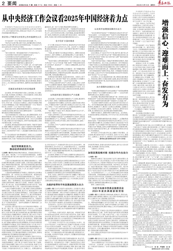 大力提振消费、提高投资效益,全方位扩大国内需求;以科技创新引领新质生产力发展,建设现代化产业体系;发挥经济体制改革牵引作用,推动标志性改革举措落地见效……会议对做好明年经济工作部署了九方面重点任务。