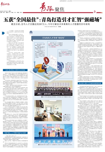 连续13年入选“外籍人才眼中最具吸引力中国城市”前十;成功入选2024年“全国人才友好型城市”“全国最具人才吸引力城市”和“全国最佳人才发展生态城市”……每一项荣誉背后,都饱含着这座城市满满的引才诚意;吸引力之下,是青岛全方位培养、引进、用好人才,悉心躬耕的成才热土。