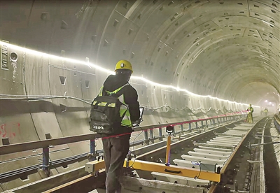 由于2号线西延段沿线人居密集,全线仅有一个铺轨基地,且地块非常狭小,所有铺轨材料及机械仅能从一个跨度30米的轨排井吊入吊出。同时受场地限制,轨排井下料口只能倾斜设置,且深度达40米,极大制约铺轨效率。青岛地铁依托班组建设,在铺轨过程中坚持党建统领、坚持党的群众路线、坚持参与式民主管理、坚持问题和目标导向、坚持创新引领,激活了班组一线的“最小细胞”和“最大活力”,广大建设者攻坚克难,以实干促高效,最终实现铺轨效率提升30%,推动项目提速推进。同时,大规模采用的“多等级减振道床+预制轨道板”及CPⅢ技术,让铺轨质量TQI指数、噪音指标显著降低。