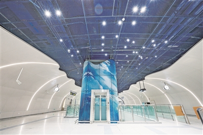 步入地铁2号线西延段,第一感觉就是“大”,空间感十足,这得益于站厅拱顶的设计和“无柱”式施工理念。站厅中部层高达5.15米,使车站整体视觉上更宽敞、更简洁明快。