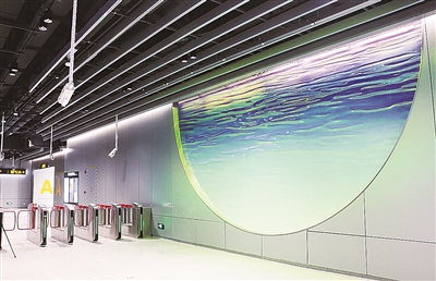 四川路(轮渡)站作品《光之浮想》,这件艺术品像是有了生命一样,跟随光线一起跃动。通过材质及灯光色彩环境的氛围烘托,营造日月朝暮的时间变化感,让人们重温往来于“青黄”两岛时的往事,通过演绎海边日出日落自然景观,重现岛屿时光,勾勒城市海岸生活。光效可根据一天中温度变化产生不同的颜色,描绘日出日落的美丽画卷,同时也表达用时间镌刻滨海生活的美好。地铁第一建设分公司副处长张奉春表示,2号线西延段在青岛地铁艺术设计专家委员会指导下,持续深化“空间一体化设计”理念,以“感悟历史痕迹,谱写港湾华章”的文化理念,将车站空间装饰、公共艺术、导向标识、服务设施、商业广告、管线综合等专业统筹集成设计,用新媒介、新观念艺术手法植入车站空间,将地域文化、城市特点、市井风情投射在地下空间。