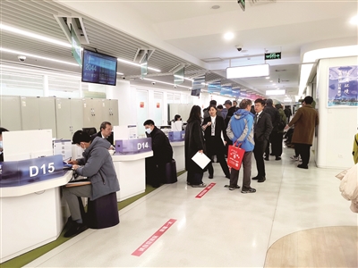 在青岛市民中心二楼不动产业务专区,购房者正 等待办理网签过户等手续。